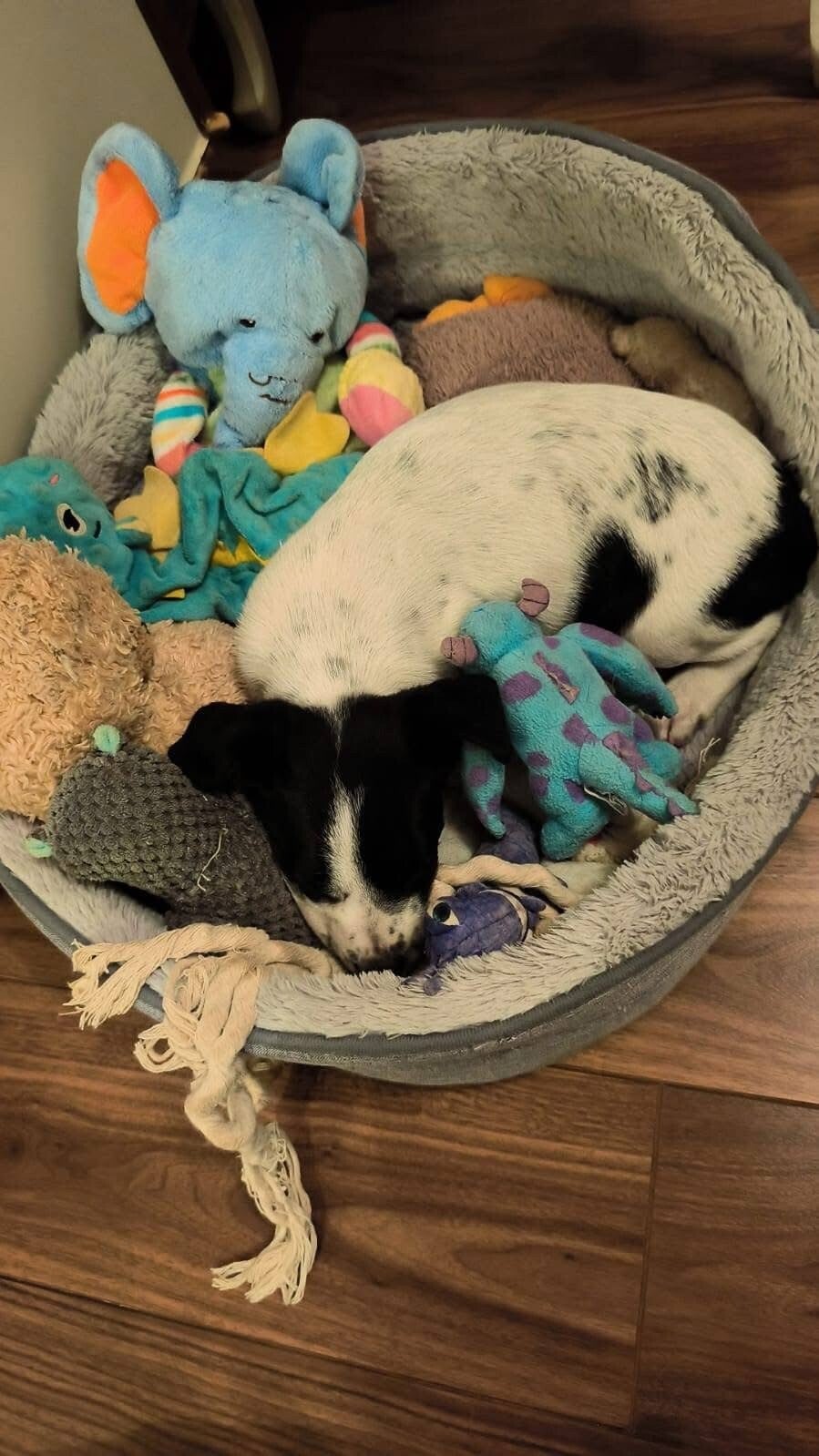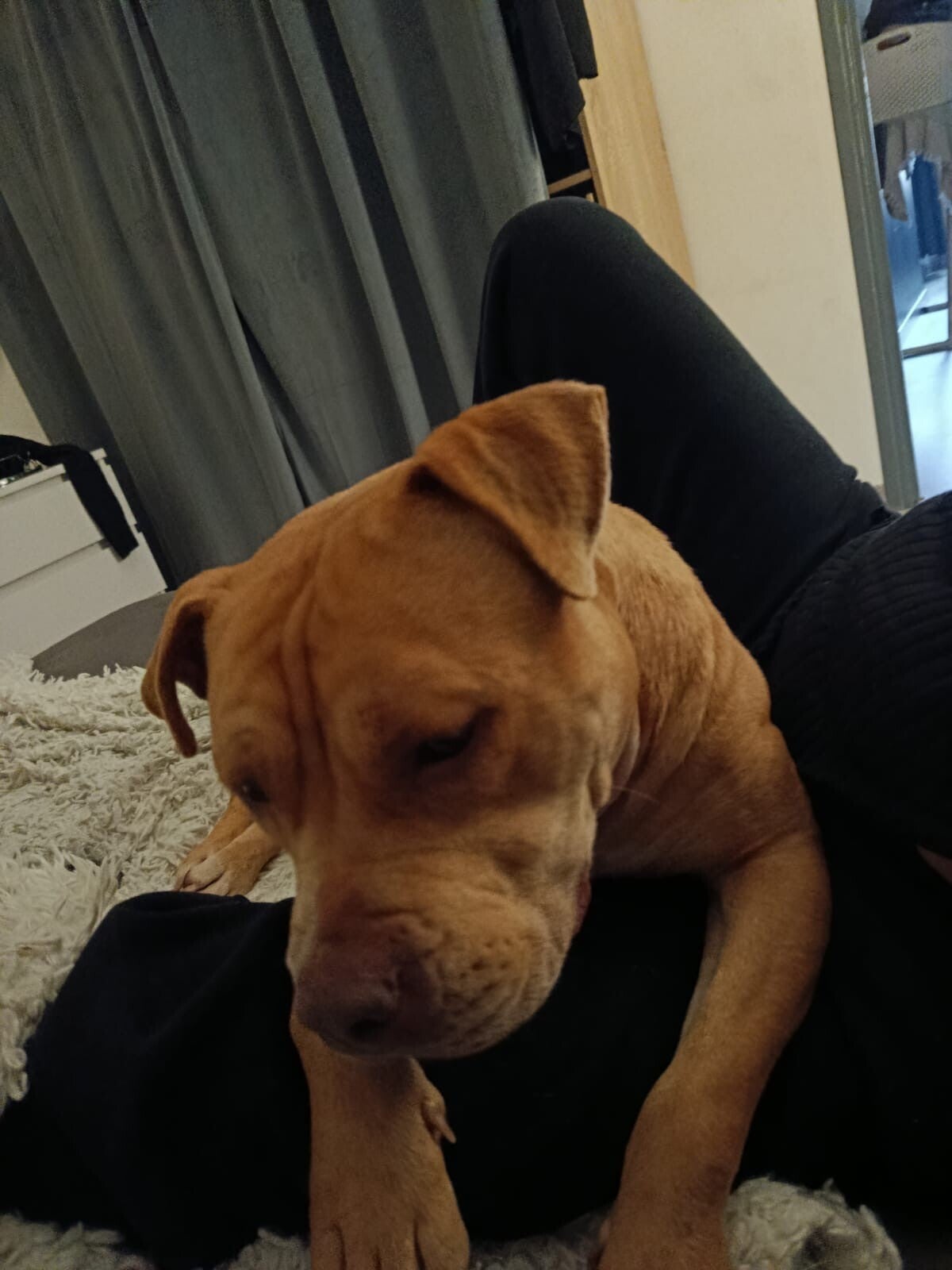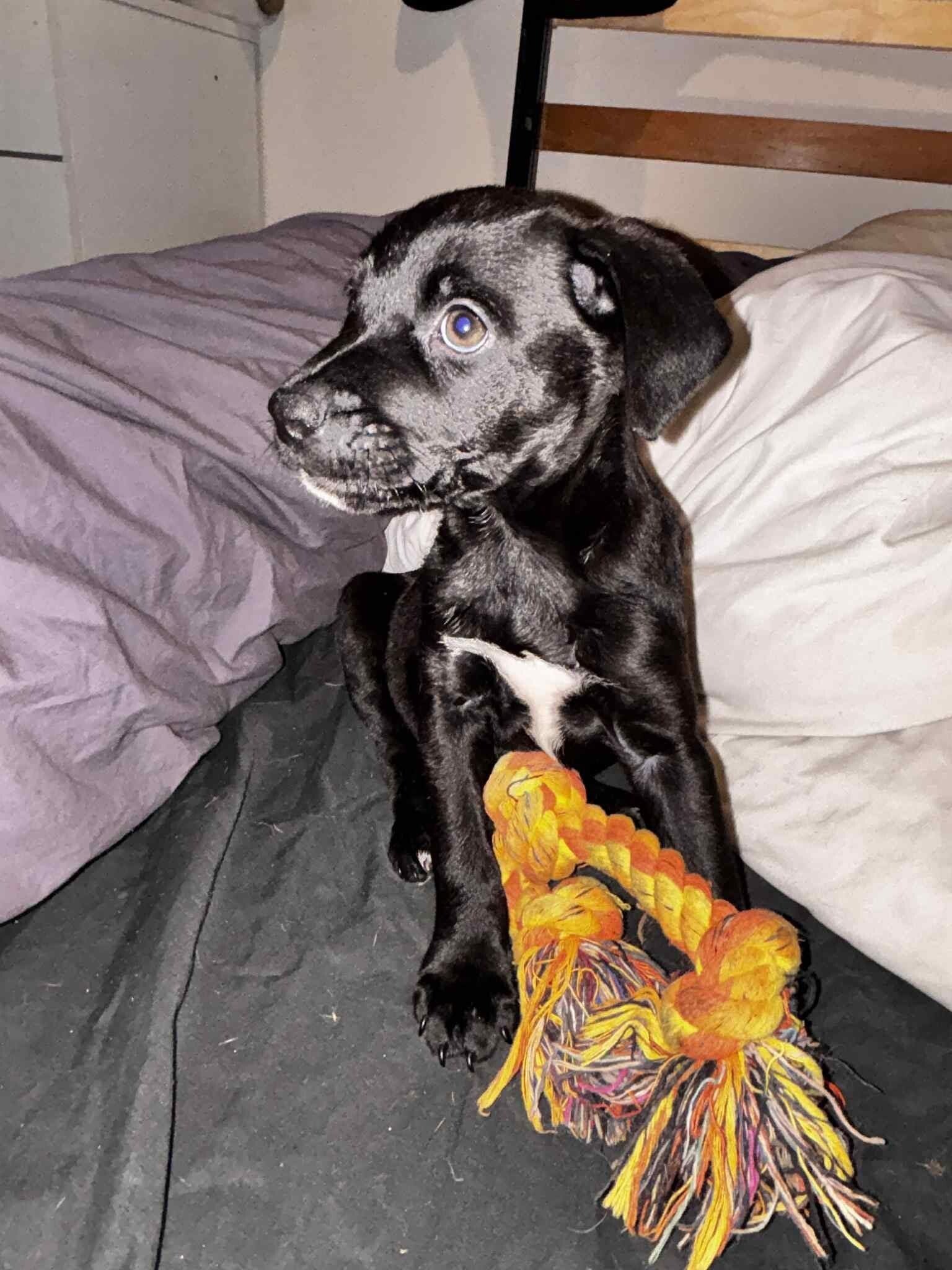 Mina est une chienne très attachante et pleine de douceur. Calme et posée quand il le faut, elle se transforme en vraie fusée dès qu’il s’agit de jouer. Elle est propre, fait ses nuits complètes de 8 heures, et adore les câlins. Mina comprend très bien le “non”, ne fait aucune bêtise, mais a un petit côté malicieux : elle adore cacher les chaussons de sa famille d’accueil (sans jamais les abîmer).